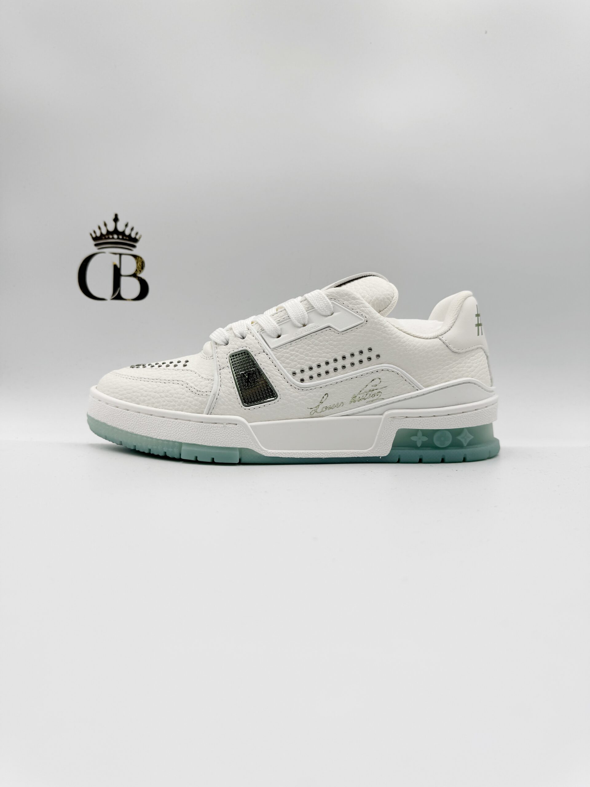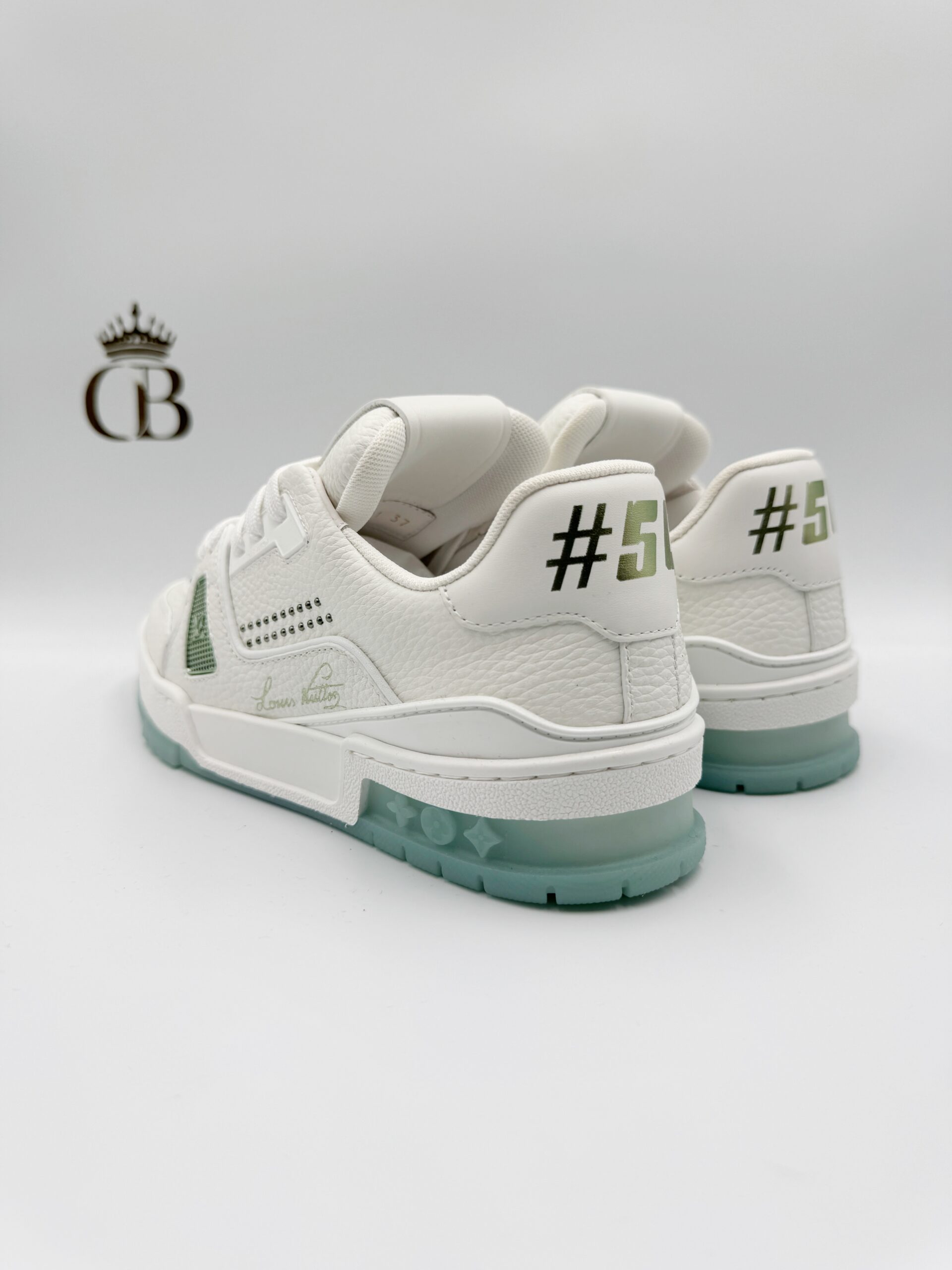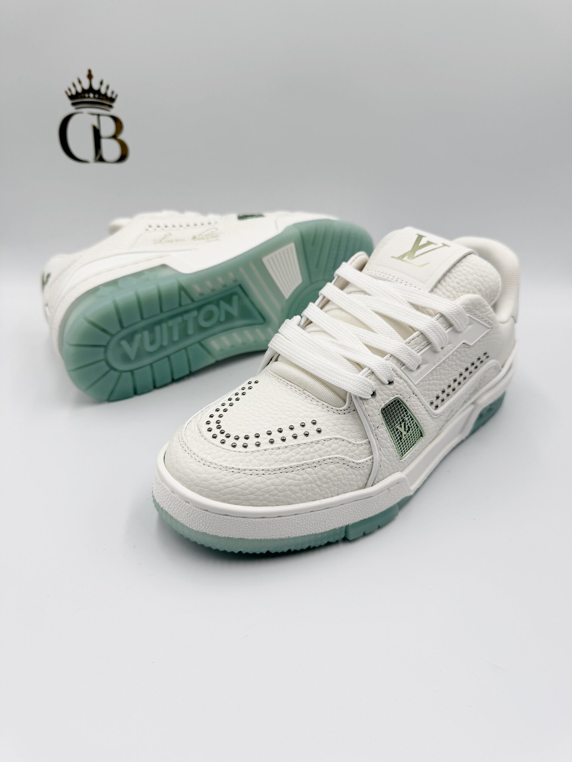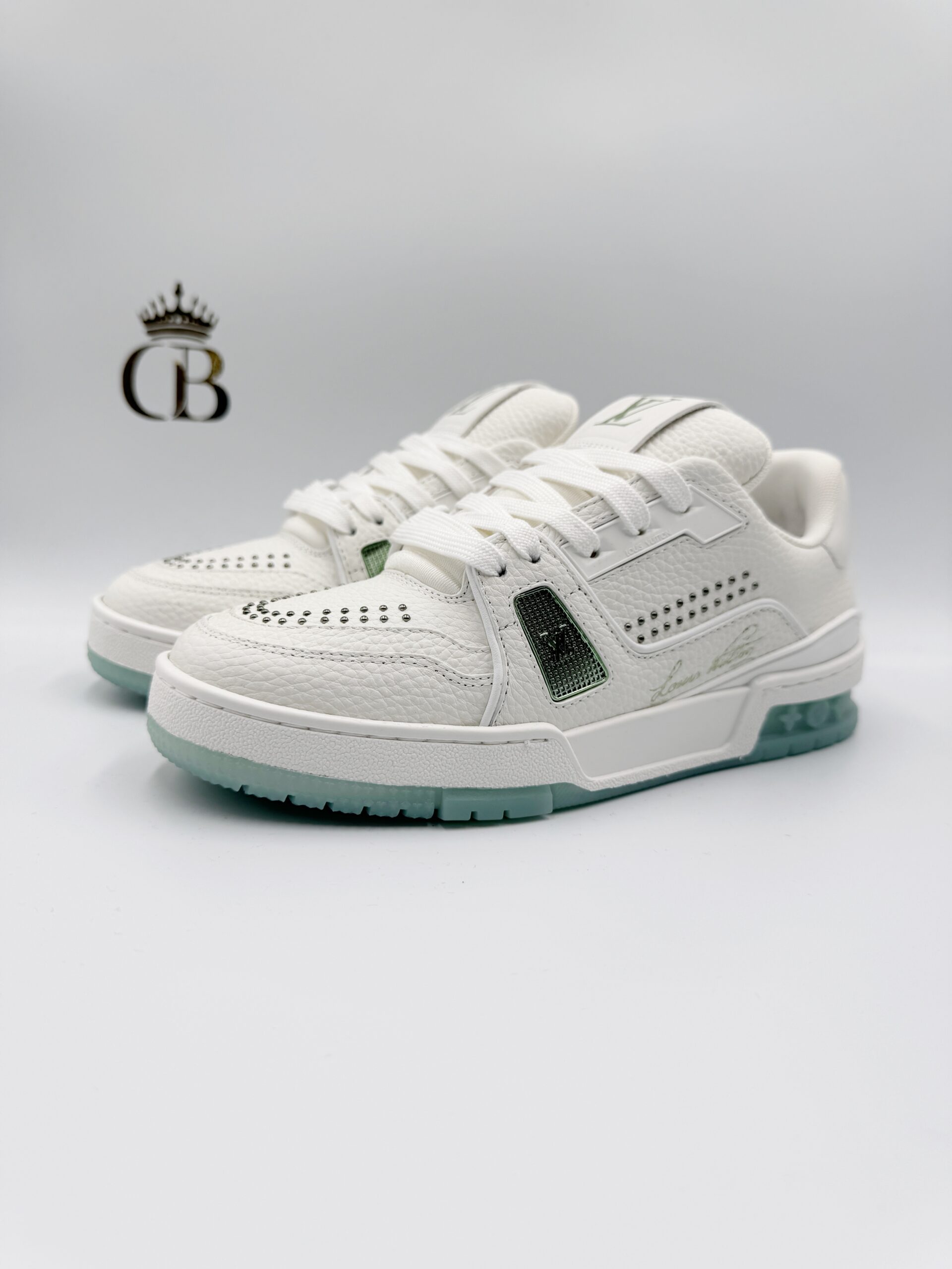 LV Trainer de piel blanco/emeralda