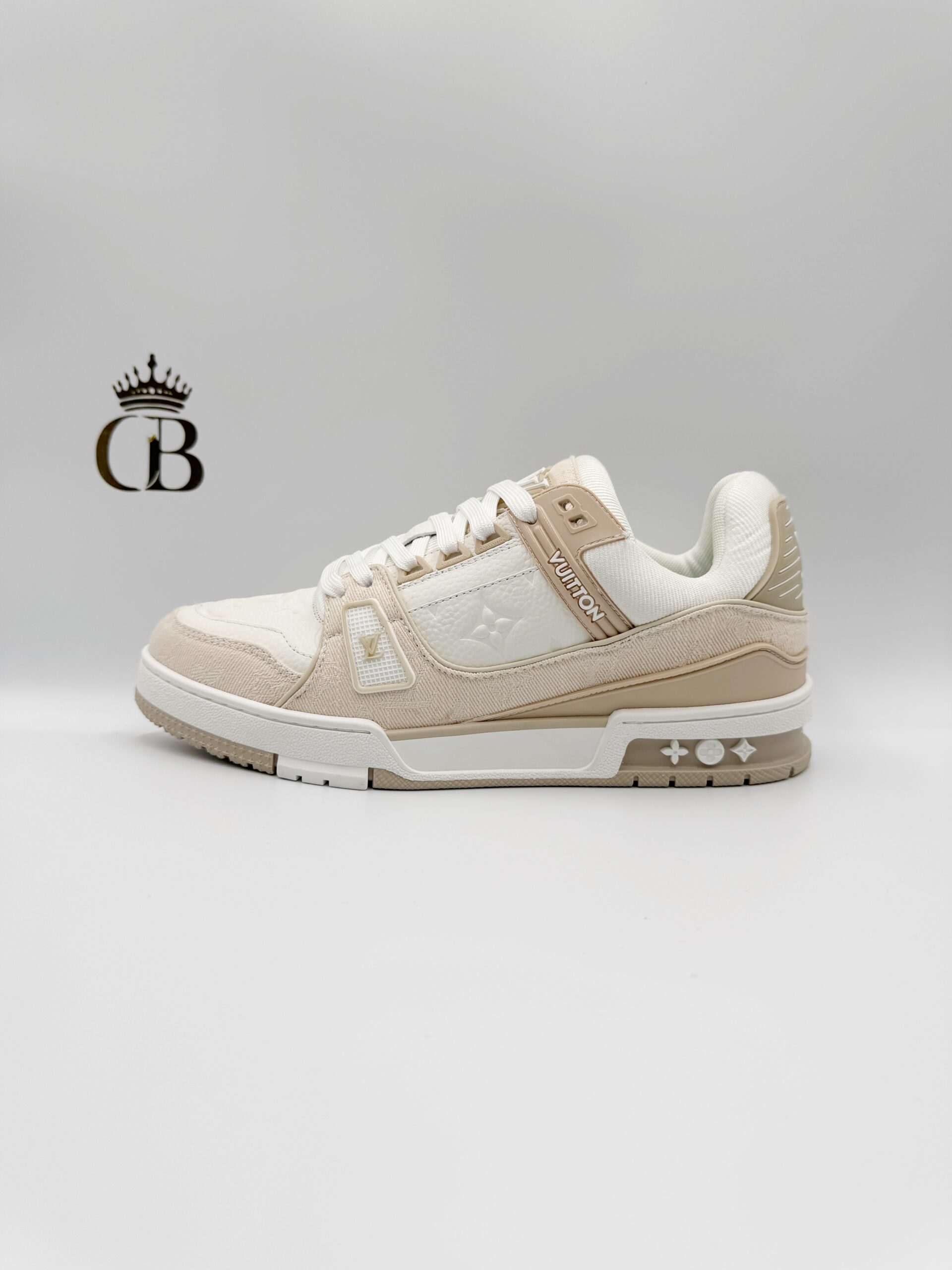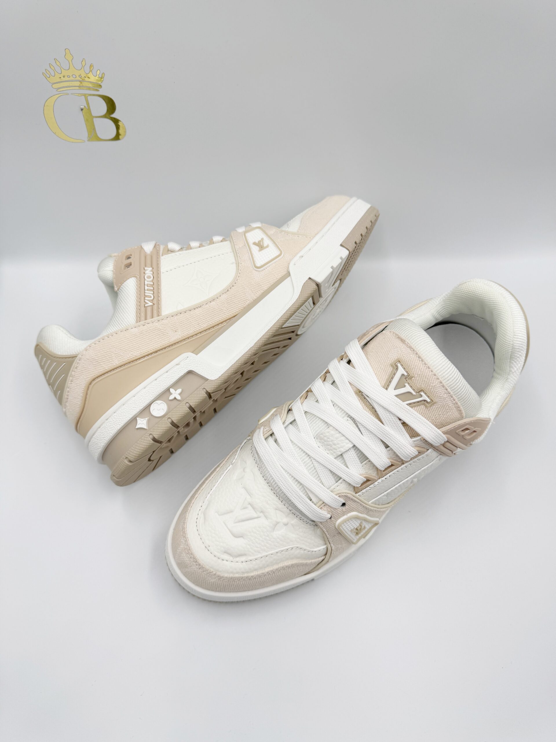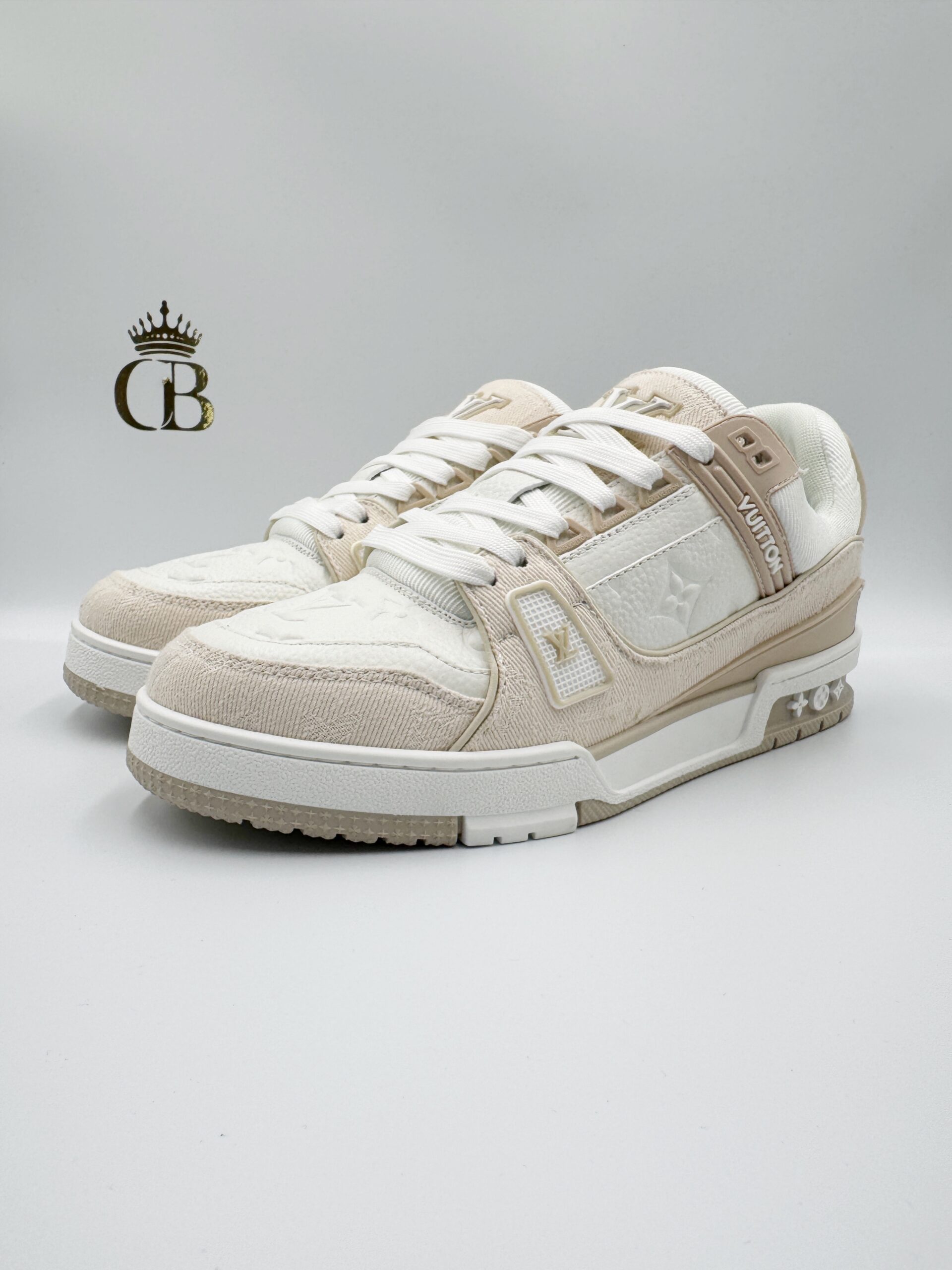 LV Trainer de piel blanco/rosado