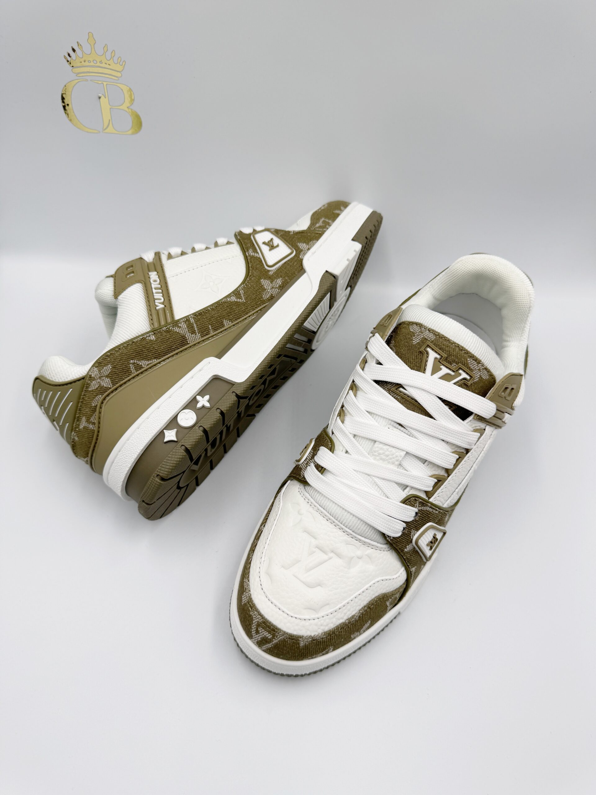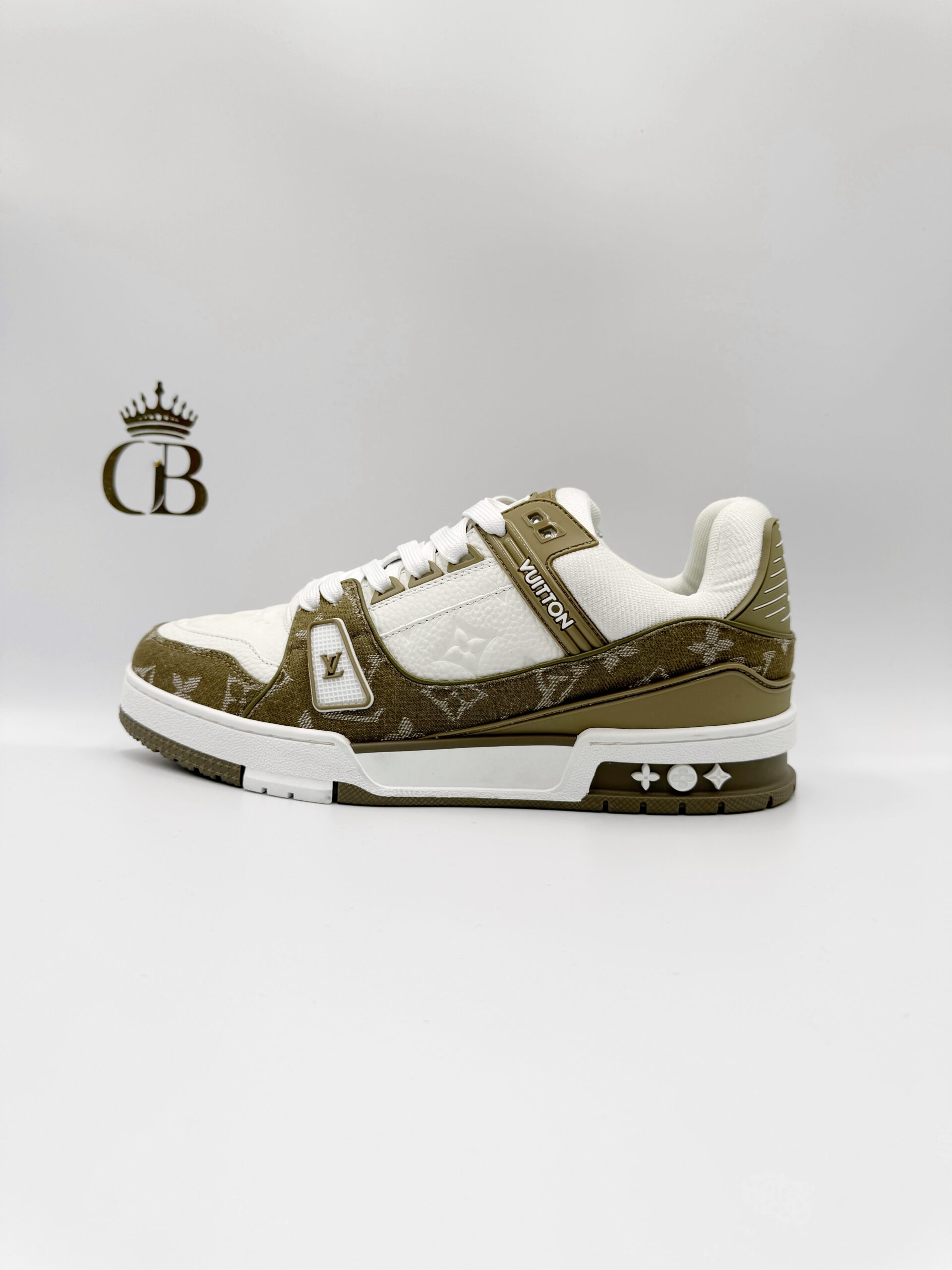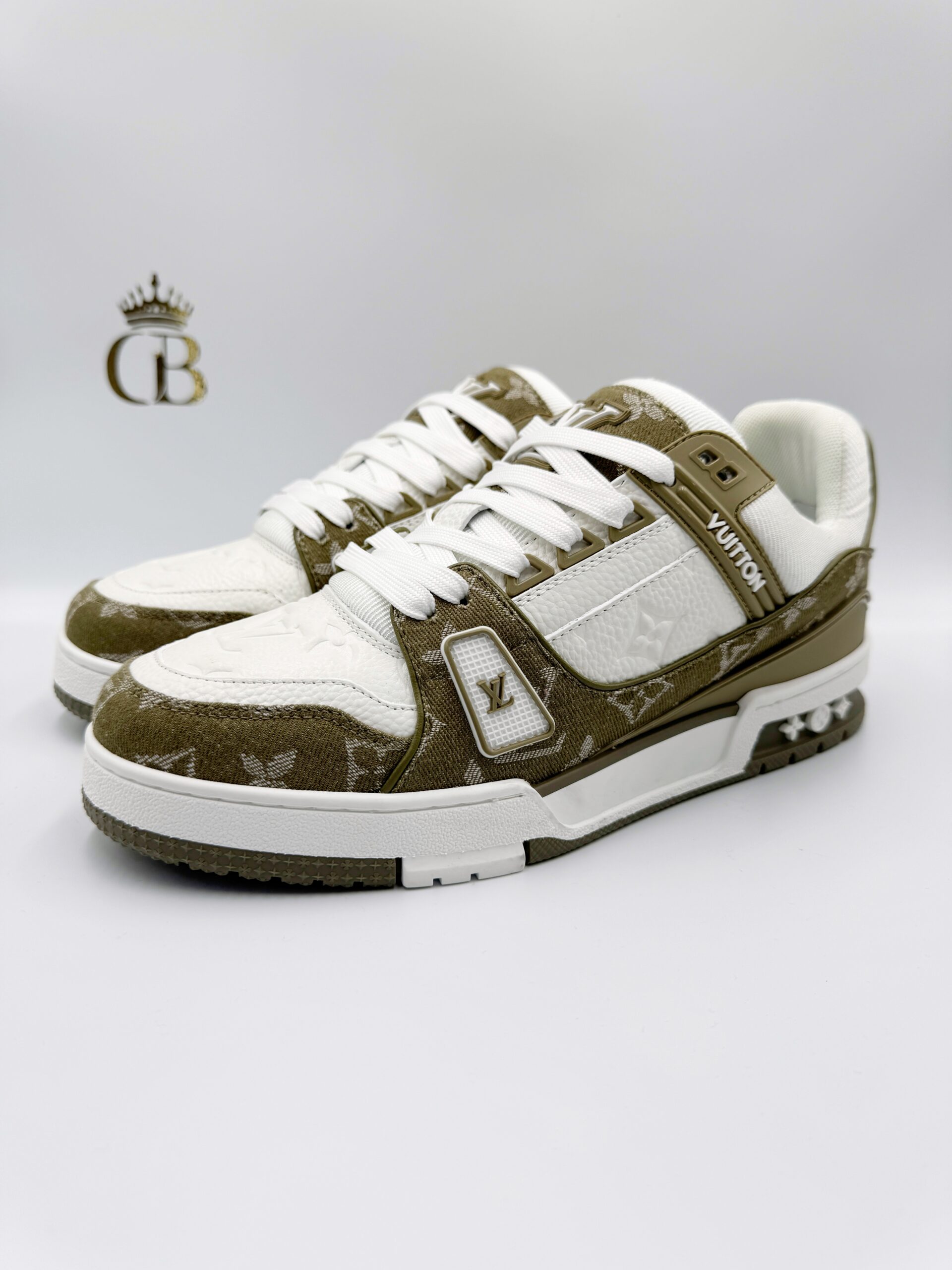 LV Trainer de piel Blanco/Verde militar
