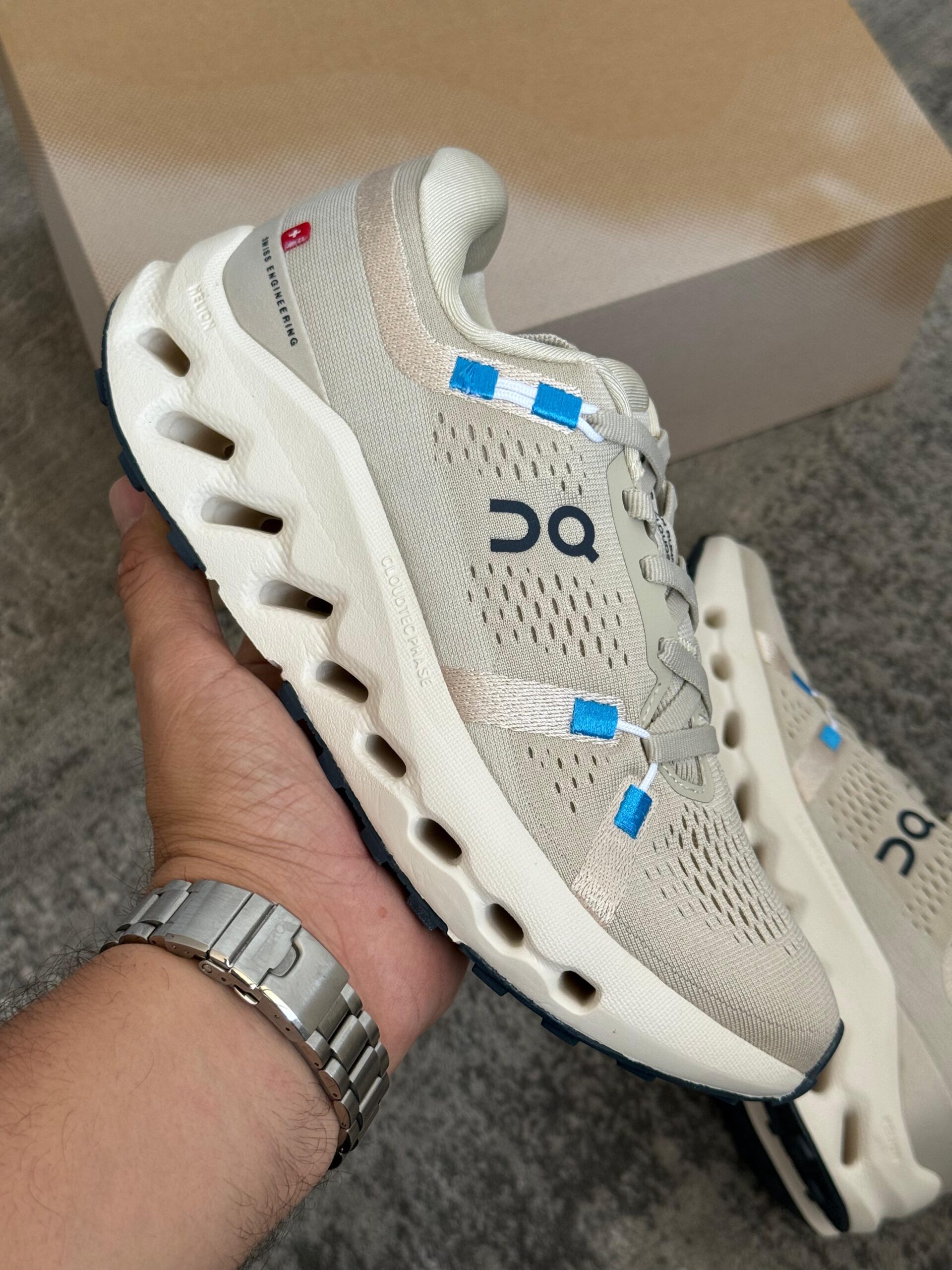 On Cloudsurfer gris con azul